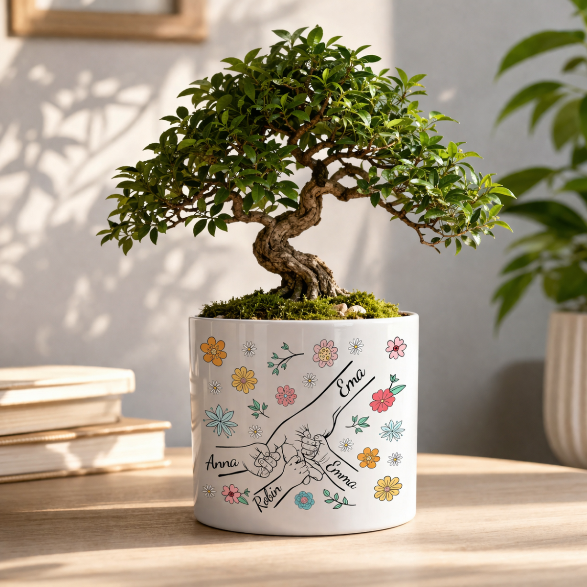 Keraamiline lillepott "Ema ja lapsed" laste nimedega