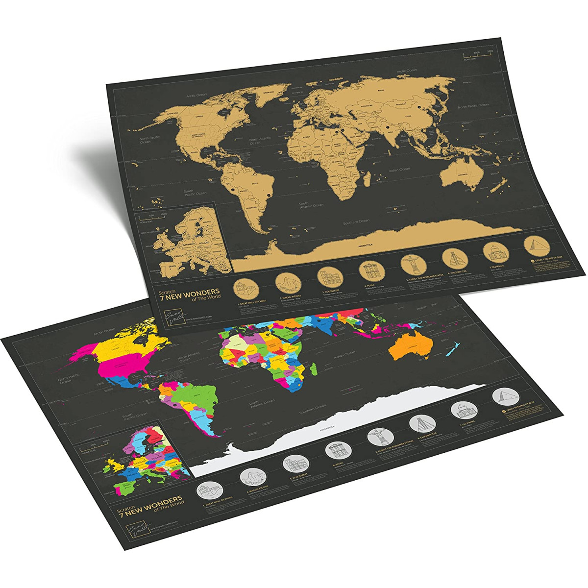 TIPPKVALITEET - Toodetud Leedus. Toodetud kõrge kvaliteediga vastupidavast paberist, kvaliteetsete värvidega ja fooliumtehnoloogiaga piltide väljakraapimine on lihtne ja mugav. Kõik riigid on selgete ja täpsete piiridega ja kontrastsete erksate värvidega, välja on toodud ka pealinnad ning kaardi all on eraldi seitse maailmaimet.
