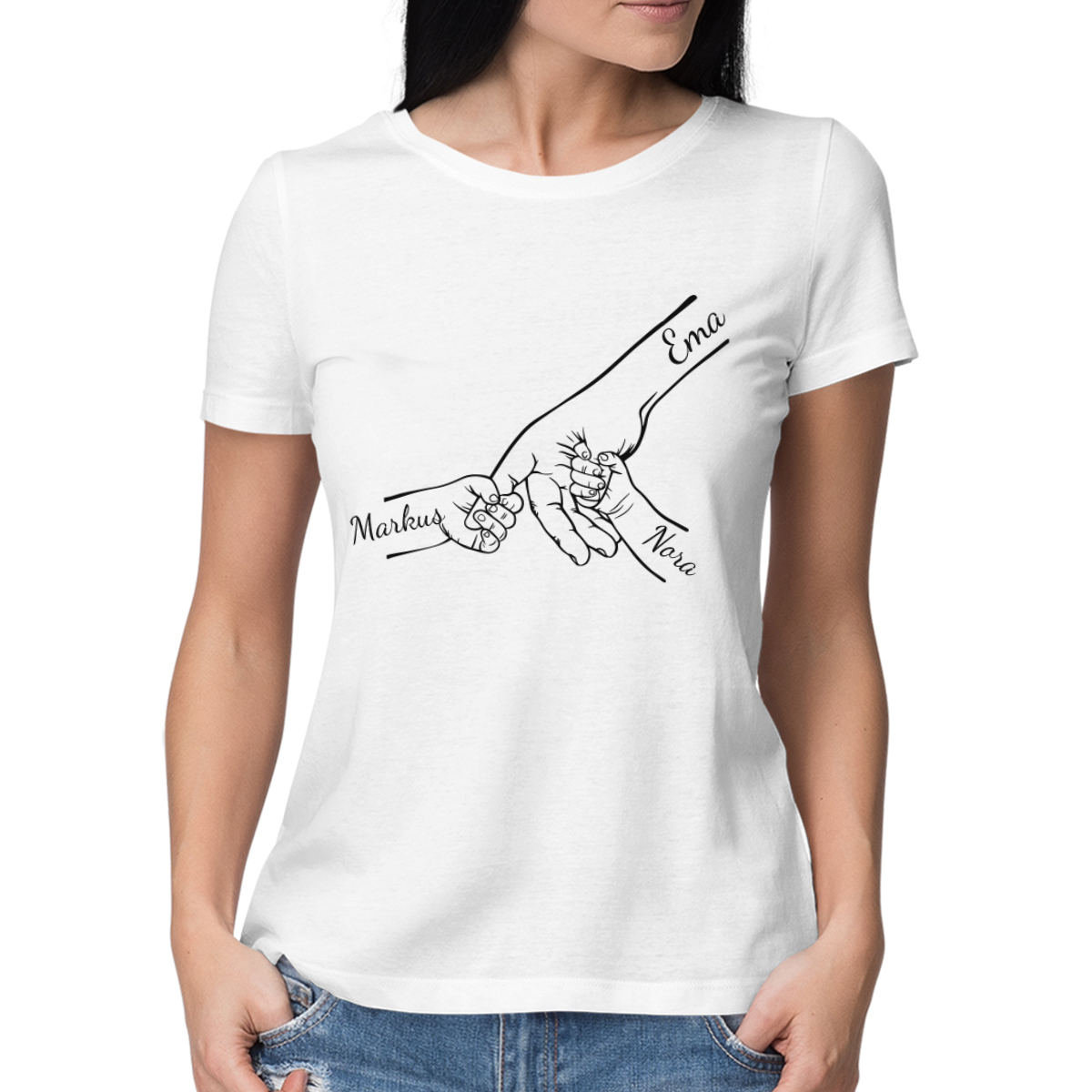 Naiste T-särk "Ema ja lapsed" valitud laste nimedega